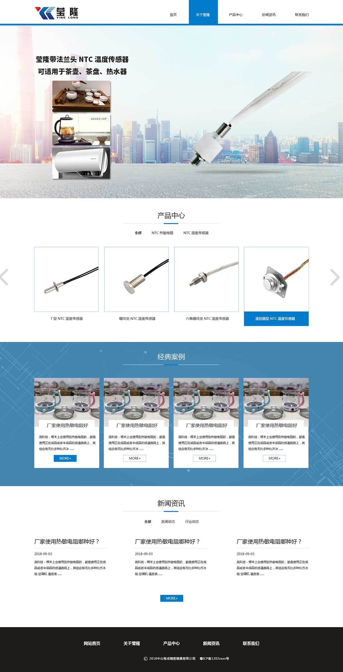 中山市莹隆智能科技有限公司是一家集研发、制造、销售、服务为一体的企业,我司坐落于中山市小榄镇埒西一玥玛工业园,占地面积5000方。专业于“NTC热敏电阻、温度传感器”;目前已拥有颇具规模和完整的生产检测设备;NTC温度传感器属于定制型产品,它不仅应用于:养生壶、茶壶、电磁炉、电饭煲、烤箱、热水器、破壁机、壁挂炉、取暖器、空调、冷柜、饮水机、消毒柜、洗衣机、豆浆机等家电设备。而且具备控制、测量、补尝温度等作用;还广泛用于汽车、电池智能马桶、电热毯、电源过热保护、灯具、电动工具、医用体温探头、工业测温、园林控温和养殖业等其它各领域。莹隆公司本着“以品质求效益、以管理求发展”的服务宗旨。公司目前拥有全自动生产线,配备高素质的技术和检验人才,确保终端使用不良率控制在5PPM。莹隆人坚持以“客户的要求为起点,精准把握客户的要求”不断创新、不断优化工艺及生产流程,持续提高产品品质,为客户提供高性价比的NTC热敏电阻、温度传感器。另我司旗下的子公司自主研发、制造、销售:自动化设备、五金配件、数控加工、冲床加工、电机、风扇等相关塑料配件。