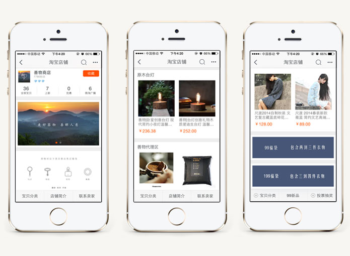 下面让我们来看看:手机淘宝,因受到屏幕大小的限制,承载的活动、商品都非常有限。搜索LIST因没有左侧、下侧的直通车宝贝LIST干扰,进入某款宝贝详情时,也不会受到其他关联推荐宝贝的影响,如果买家还想继续逛下去,只能进入店铺首页,如果想再次引导买家在店铺内逛下去,延迟买家在店铺的停留时间,一个好的店铺首页是手机流量的关键。