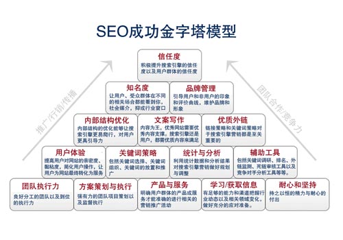 很多学习SEO的朋友都曾经看到过SEO金字塔模型,肯定也了解了SEO金字塔包含的细致工作。但是随着搜索引擎的不断发展,尤其在国内百度算法频频更新的情况下,我们如果仍然按照最初的意思去做SEO的话,那么我相信这条理论依然对我们有所帮助,但是作用已经大不如前了。