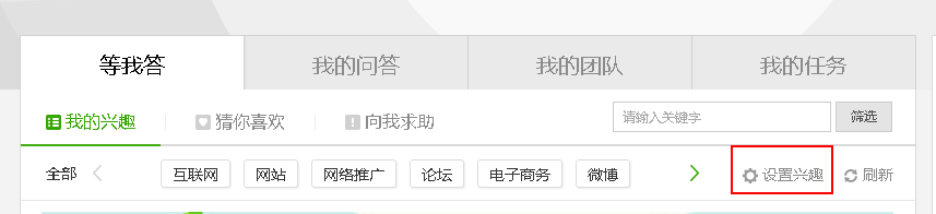 3、给自己的每个帐号设置兴趣,兴趣内容一定是自己粉丝关注的关键词。如果是热门行业的公众号,那么每个帐号设置3-5个兴趣,如果是冷门行业的就设置8-10个兴趣。(在百度知道的个人中心里面有个设置兴趣选项,如下图)